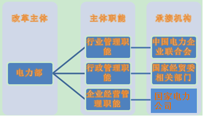 第二階段是政企分開階段:主要的標(biāo)志是1996年國家電力公司的成立。國家電力公司成立后,電力工業(yè)部繼續(xù)行使對電力工業(yè)的行政管理職能,原由該部承擔(dān)的國有資產(chǎn)經(jīng)營職能和企業(yè)經(jīng)營管理職能移交給國家電力公司。國家電力公司不具有政府行政管理職能,接受電力工業(yè)部等有關(guān)部門的行政管理與監(jiān)督。中國電力企業(yè)聯(lián)合會履行對電力工業(yè)的行業(yè)管理與服務(wù)職能。1998年3月,電力部撤銷,電力行政管理職能移交給國家經(jīng)貿(mào)委。