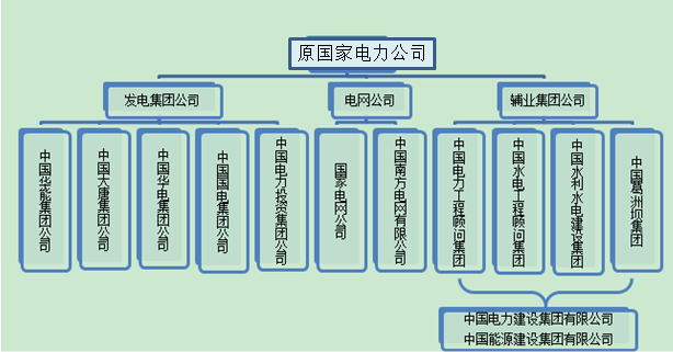 目前已經(jīng)進入了新一輪電力體制改革,以三放開、一獨立、三加強為主要內(nèi)容。2011年9月由兩大電網(wǎng)公司剝離的輔業(yè)與4家中央電力設(shè)計施工企業(yè)重組形成中國電力建設(shè)集團有限公司、中國能源建設(shè)集團有限公司。