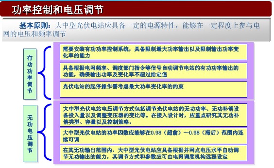 基本原則:大中型光伏電站應當做電源看待,應具備一定的耐受電網頻率和電壓異常的能力,能夠為保持電網穩定性提供支持。