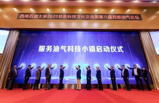 論壇上,在中科院院士、中石油勘探開發研究院副院長鄒才能,西南石油大學黨委書記趙正文,四川社科聯黨組副書記彭斌,四川能投集團黨委書記、董事長孫云,成都市新都區委副書記、區長王忠誠,四川發改委黨組成員副主任李明騄,成都理工大學黨委常委副校長黃琦,中石油西南分公司黨委常委副總經理李寶軍,西南石油大學黨委常委、副校長巫曉兵,安東石油技術集團有限公司董事會主席羅林,中國燃油進出口有限公司董事長王永照,重慶市九龍坡區科技技術局副局長劉傲霜等人的共同見證下,“服務油氣科技小鎮”于2020年10月31日啟動。