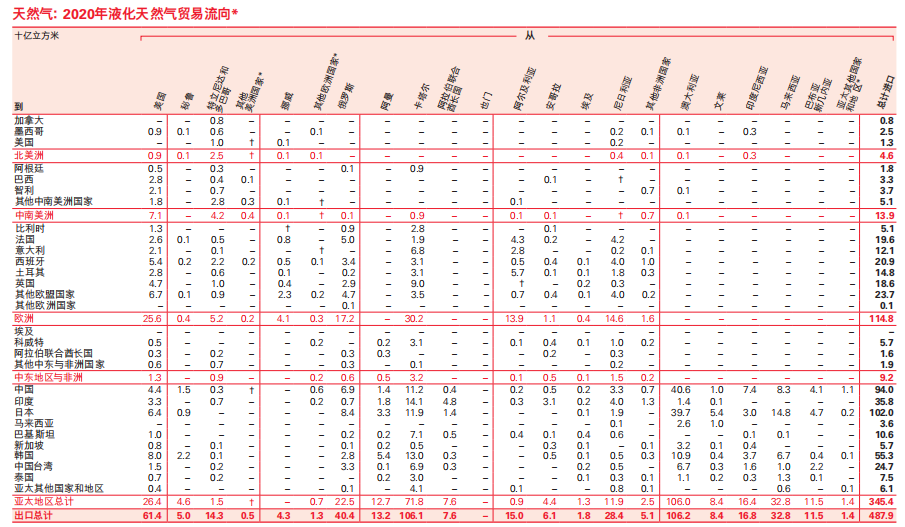 天然氣方面,2020年,俄羅斯向歐洲出口的管道氣占自身出口量的84.8%,達到1677億方,該氣量占歐洲管道氣進口量的37.5%。另外,俄羅斯向歐洲的液化天然氣出口量為172億方,占歐洲LNG進口量的15%。