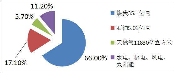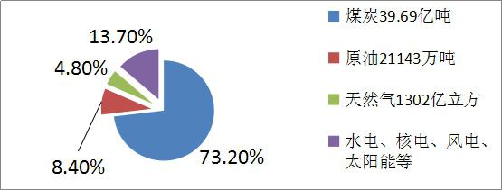 我國(guó)2014年能源生產(chǎn)總量為36億噸標(biāo)煤,能源總消費(fèi)量為42.6億噸標(biāo)煤。