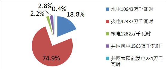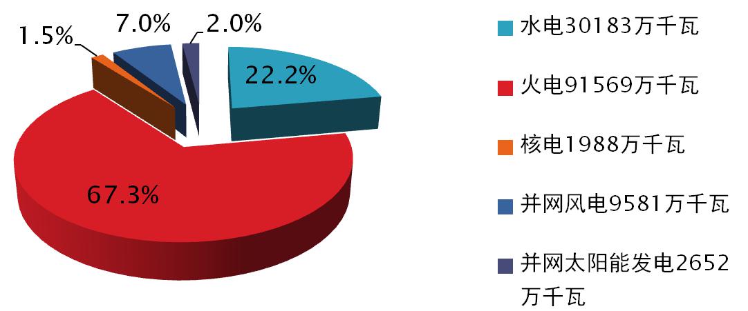 2014年我國(guó)電力裝機(jī)總?cè)萘繛?3.6億千瓦,全年發(fā)電總量為56495.8億千瓦時(shí)。