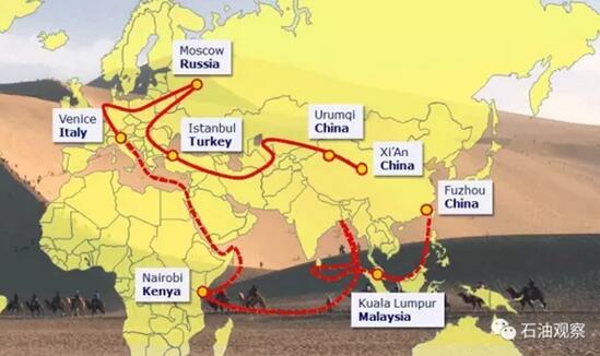 歷經20 多年的發展,目前我與絲綢之路經濟帶沿線國家已建立了穩定的油氣合作基礎,能源合作也成為絲綢之路經濟帶沿線各國共同利益的重要契合點。截至2014 年底, 中國石油企業在"一帶一路"沿線,尤其絲綢之路經濟帶上,25個國家中開展了90余個油氣合作項目, 建成聯通中亞和俄羅斯、緬甸到中國的5 條跨國油氣管線, 累計投資超過660 億美元, 極大地促進了當地經濟社會發展,形成了有效的合作模式。