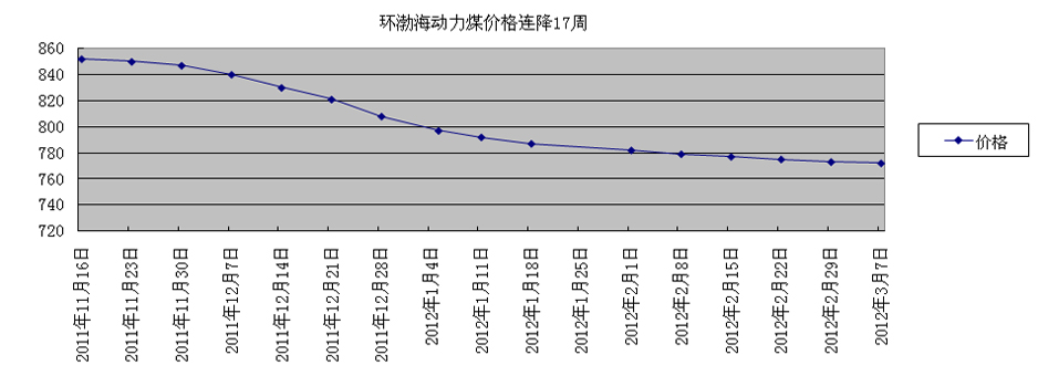 | 2012-02-22 | 環(huán)渤海地區(qū)港口平倉的發(fā)熱量5500大卡市場動力煤的綜合平均價格報收775元/噸,比前一報告周期下降了2元/噸。 發(fā)熱量5500大卡/千克市場動力煤:在秦皇島港、曹妃甸港、國投京唐港、京唐港、天津港和黃驊港的主流成交價格分別報收765-775元/噸、760-770元/噸、765-775元/噸、765-775元/噸、780-790元/噸和785-795元/噸。 [詳細] |