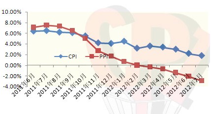 2012年7月份,全國居民消費價格總水平同比上漲1.8%。其中,城市上漲1.9%,農村上漲1.5%;食品價格上漲2.4%,非食品價格上漲1.5%;消費品價格上漲1.7%,服務項目價格上漲2.0%。1-7月平均,全國居民消費價格總水平比去年同期上漲3.1%。