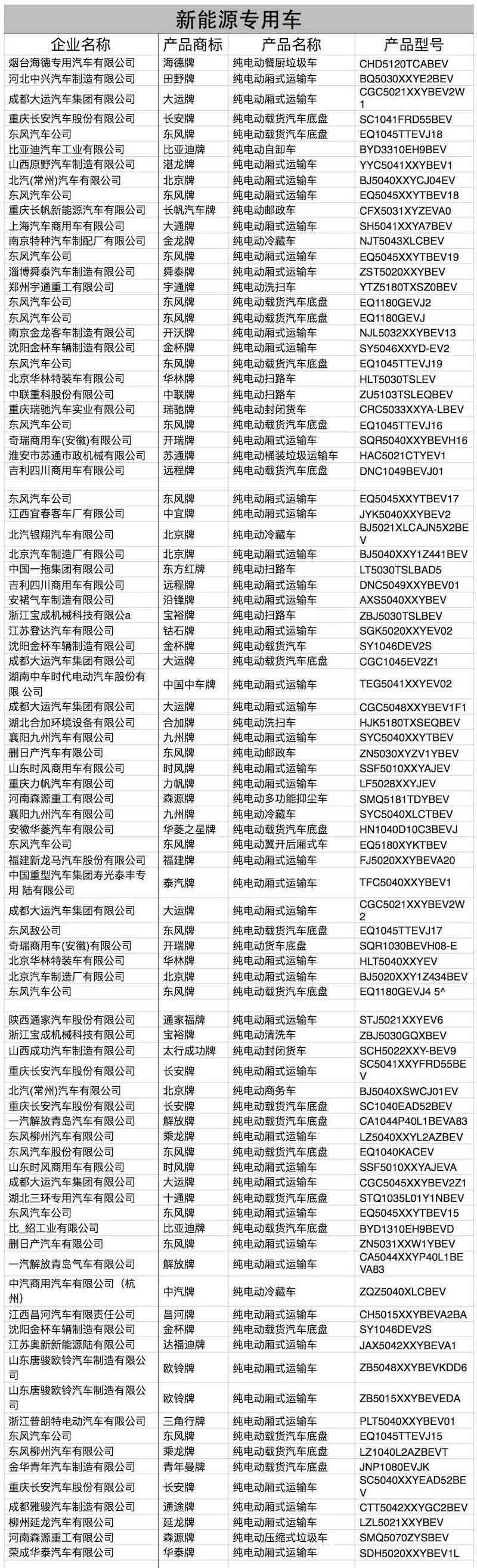 9月15日,工業和信息化部在官方網站公示了申報第300批《道路機動車輛生產企業及產品公告》新產品,本次共申報了320款新能源汽車產品。按動力類型分,純電動汽車產品300個、插電式混合動力產品16個、燃料電池產品4個;按產品類型分,新能源乘用車有26個、新能源客車有128個、新能源專用車有166個。新能源專用車產品申報數量首次超過新能源客車,成為本批次產品公示中數量占比最大的領域。
