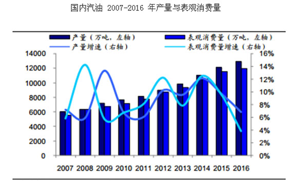 從國(guó)內(nèi)需求來(lái)看,按照我國(guó)汽油年表觀消費(fèi)量1.2億噸,全面使用E10(汽油中含有10%比例的乙醇)則需要1200萬(wàn)噸燃料乙醇。目前,我國(guó)燃料乙醇年產(chǎn)量?jī)H260萬(wàn)噸,摻兌比例僅2%左右,可謂潛力巨大。