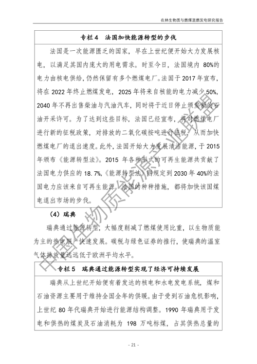 5.農林生物質與燃煤混燃發電存在技術挑戰,難以保障可再生能源補貼安全。報告提出國外混燃發電主要目標為煤炭減量化及減排二氧化碳為主的溫室氣體,目前更多發展與天然氣混燃或者全部生物質作為原料。我國農林生物質與燃煤混燃發電存在原料適應性差、能源利用效率低、無法解決秸稈露天焚燒、發電量計量監測困難、無法發揮大規模替代燃煤作用等技術挑戰和問題,仍處于發展初步階段。需進一步開展有效的監管工作,逐步完善農林生物質發電領域的監管體系,為可再生能源補貼資金的安全發放提供保障。