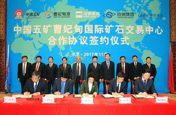 3日上午,中國(guó)五礦集團(tuán)公司(以下簡(jiǎn)稱“中國(guó)五礦”)與曹妃甸港集團(tuán)股份有限公司、河鋼集團(tuán)、首鋼集團(tuán)、中國(guó)遠(yuǎn)洋海運(yùn)集團(tuán)在京舉行簽約儀式,五方?jīng)Q定以增資擴(kuò)股的方式,在曹妃甸港共同建設(shè)涵蓋保稅、倉(cāng)儲(chǔ)、配礦、保值、融資、現(xiàn)貨、期貨交割庫(kù)等功能的新型綠色環(huán)保、智能高效、功能齊全的億噸級(jí)中國(guó)五礦曹妃甸國(guó)際礦石交易中心。