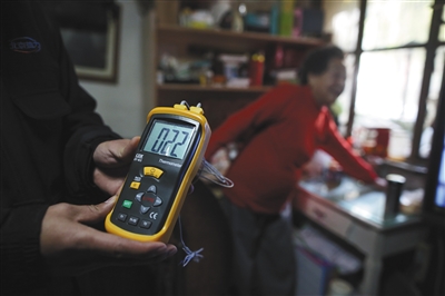 昨日是供暖首日,西馬場南里22號樓居民家,熱力公司工作人員入戶測得室溫為22℃。新京報記者 侯少卿 攝