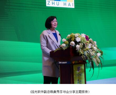 作為本次大會唯一受邀的廠商代表,遠光軟件副總裁秦秀芬受邀在開幕式上帶來主題報告:“能源互聯,灣區先行”。