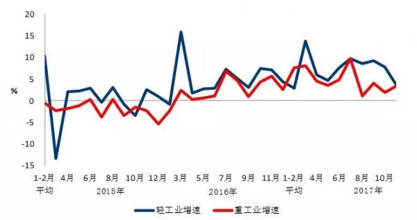 圖2 2015年以來分月輕、重工業用電量增速情況