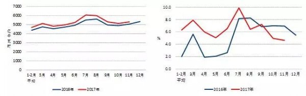 1-11月份,全國規模以上電廠火電發電量41728億千瓦時,同比增長4.7%,增速比上年同期提高2.5個百分點。分省份看,全國僅北京(-10.7%)、山東(-4.0%)、海南(-3.2%)、云南(-2.6%)、黑龍江(-0.5%)和遼寧(-0.2%)負增長,其他25個火電發電量正增長的省份中,寧夏(23.0%)和福建(20.7%)增速超過20%,廣東(13.1%)和江西(12.6%)增速超過10%。11月份,全國規模以上電廠火電發電量3762億千瓦時,同比下降1.4%。