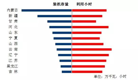 圖6 1-11月份風電裝機較多省份風電裝機容量和設備利用小時