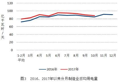 1-10月份,全國制造業用電量26809億千瓦時,同比增長6.2%,增速比上年同期提高4.6個百分點。10月份,全國制造業用電量2728億千瓦時,同比增長4.3%;制造業日均用電量88.0億千瓦時/天,分別比上年同期和上月增加3.5億千瓦時/天和減少2.3億千瓦時/天。