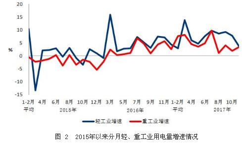 1-11月份,全國(guó)工業(yè)用電量39473億千瓦時(shí),同比增長(zhǎng)5.4%,增速比上年同期提高2.8個(gè)百分點(diǎn),占全社會(huì)用電量的比重為68.9%,對(duì)全社會(huì)用電量增長(zhǎng)的貢獻(xiàn)率為58.2%。其中,輕工業(yè)用電量為6830億千瓦時(shí),同比增長(zhǎng)7.1%,增速比上年同期提高2.6個(gè)百分點(diǎn);重工業(yè)用電量為32643億千瓦時(shí),同比增長(zhǎng)5.1%,增速比上年同期提高2.9個(gè)百分點(diǎn)。