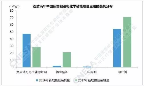 從應用分布上看,新增投運項目全部應用在集中式可再生能源并網、輔助服務和用戶側領域。其中,用戶側領域的功率規模最大,超過70MW,輔助服務領域的同比增速最大,接近1000%。