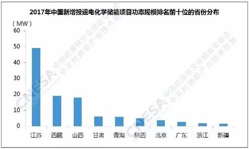 從地區分布上看,項目主要集中在華東、華北、華南和西北地區。其中江蘇省的裝機規模最大,接近50MW。