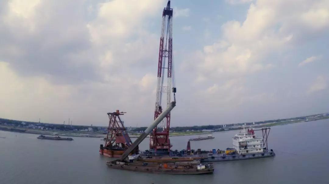 孟加拉國屬于典型的沖積帶,帕德瑪河床下110米的地方,依然是疏松的沙層。在這里建設(shè)大橋,橋墩的主體結(jié)構(gòu)——鋼樁,至少要達(dá)到120米的長度,才能確保大橋穩(wěn)如泰山。120米的鋼樁,重達(dá)550噸,世界上沒有任何起重設(shè)備可以完成如此之長的鋼結(jié)構(gòu)豎直吊裝。中國工程師拿出了一個讓世界瞠目的方案,把120米的鋼樁分成兩節(jié),在施工現(xiàn)場進行組合安裝。