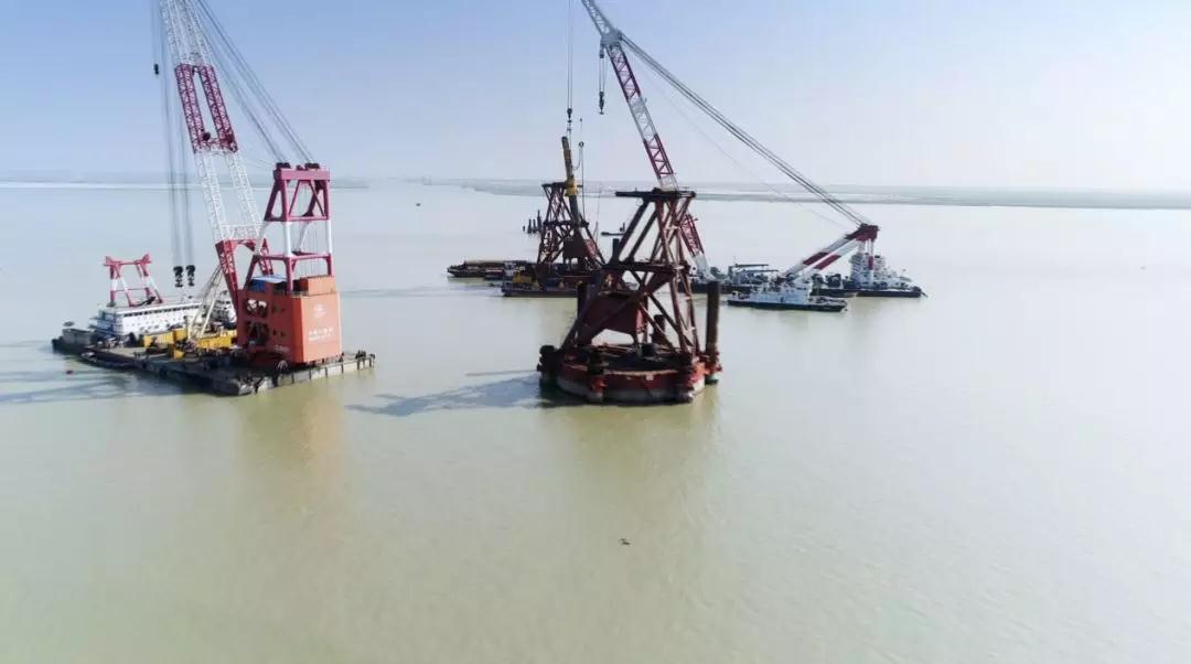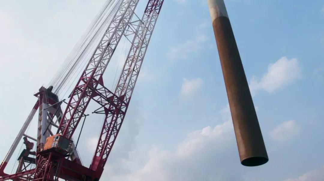 歷經(jīng)48小時,總長120米、直徑3米、總重550噸的全球最大的橋梁主墩鋼樁,穩(wěn)穩(wěn)地嵌入河床120米深處。