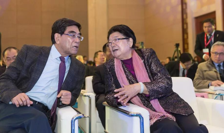 第十屆全國(guó)人大常委會(huì)副委員長(zhǎng)顧秀蓮(右)與全國(guó)政協(xié)常委、中國(guó)石油化工集團(tuán)公司原董事長(zhǎng)、黨組書記傅成玉(左)在第九屆國(guó)際石油產(chǎn)業(yè)高峰論壇現(xiàn)場(chǎng)交流