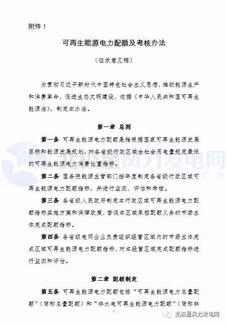 附件: 1.可再生能源電力配額及考核辦法(征求意見稿)