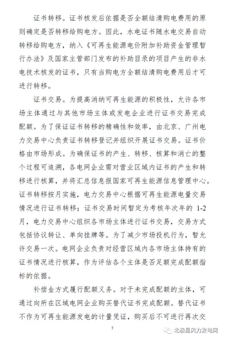 文件指出,在配額實施方面,各省級電網公司制定經營區域完成配額的實施方案,指導市場主體優先開展可再生能源電力交易,在市場機制無法保障可再生能源電力充分利用時,按照各省級人民政府批準的配額實施方案進行強制攤銷。