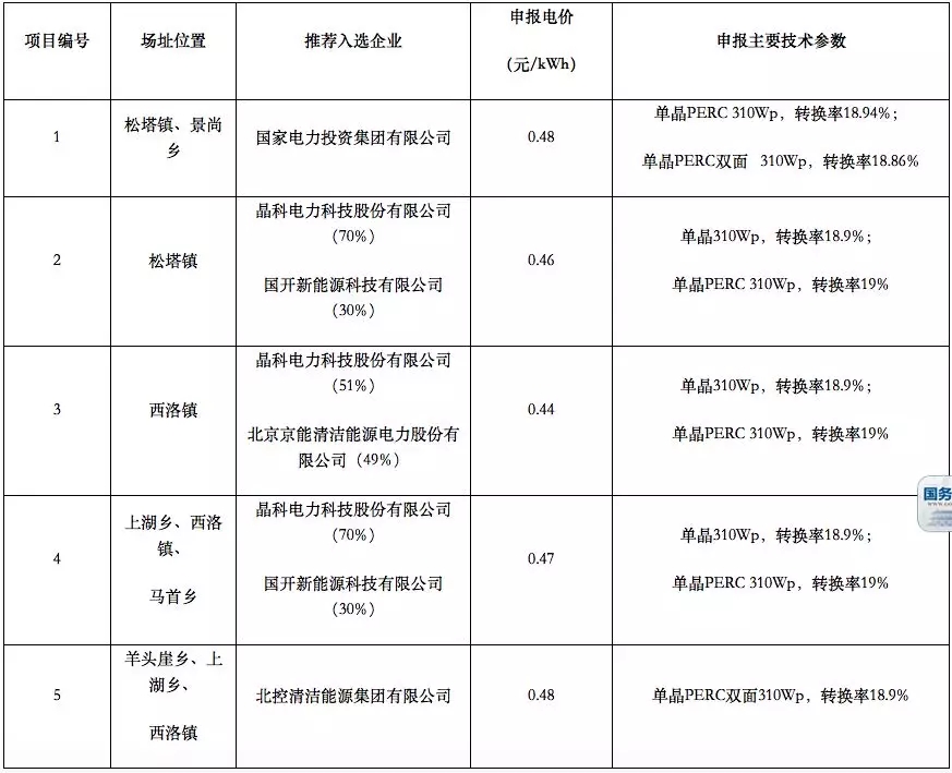 企業:國家電投、晶科&國開新能源*2、北控、晶科&京能