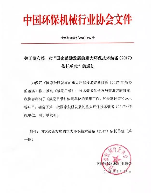近日,中國環保機械行業協會公布了第一批“國家鼓勵發展的重大環保技術裝備依托單位”,杰瑞環??萍加邢薰荆ㄒ韵潞喎Q“杰瑞環保”)的三項環保裝備入選。