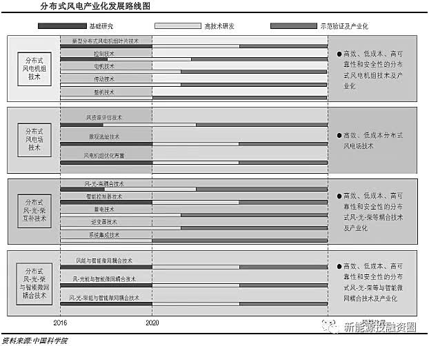 (1)2016—2020年,將在分布式風電機組及葉片、電氣控制系統等關鍵部件,分布式風電場風能資源評估、微觀選址以及分布式風能利用與其他可再生能源互補綜合利用等方面開展基礎理論、共性技術問題研究與公關;在分布式風電機組整機設計、電機、變流器等關鍵部件,分布式風能利用與其他可再生能源互補綜合利用系統集成及關鍵設備等方面開展研發及研制。在發展大型風電機組的同時兼顧考慮中小型風電在分布式利用中的作用。