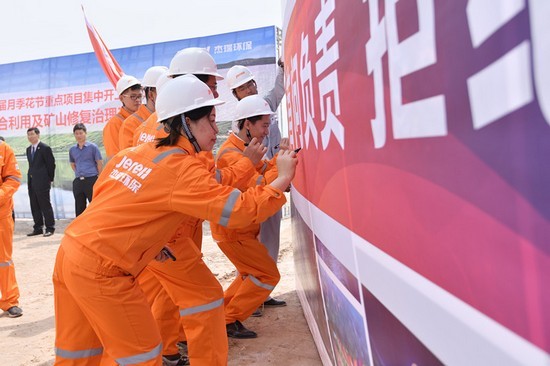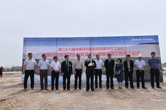 柞村鎮(zhèn)黨委書記楊棟、柞村鎮(zhèn)鎮(zhèn)長邱維興、全國綠色礦山聯(lián)盟理事長杜根杰、杰瑞環(huán)保集團(tuán)董事長王丕學(xué)、杰瑞集團(tuán)高級副總裁李雪峰、杰瑞設(shè)計(jì)院院長楊波出席項(xiàng)目開工儀式并為項(xiàng)目奠基。