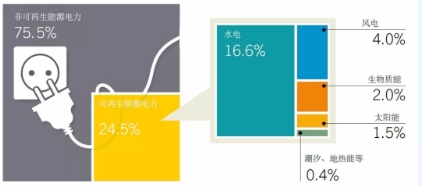為促進并鼓勵可再生能源的廣泛應用,截止2016年底,全球已有176個國家實施可再生能源目標制度,大多數目標重點集中在電力部門的可再生能源電力使用,有150個國家制定了明確的可再生能源電力占比目標。