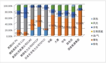 圖 4. 國內外電力企業電力裝機結構對比