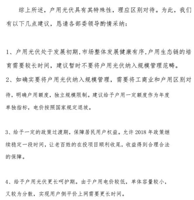 行業內的戶用標準化聯盟也向中國光伏行業協會及三部委提出了自己的意見: