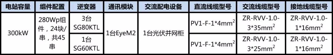 考慮到占地面積、全壽命周期的收益等因素,300kW村級電站,選用目前扶貧電站中主流的280Wp組件,24塊組件連成一串,共45串。