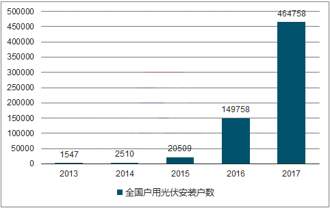 2013-2017年全國戶用光伏新增戶數(shù)