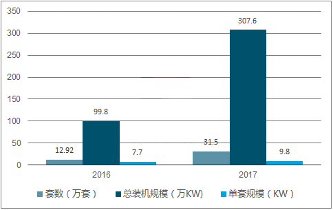 2017年全國新增戶用光伏46.5萬戶,是2016年的3.1倍。2017年,國家電網(wǎng)經(jīng)營區(qū)新增接入居民分布式光伏發(fā)電并網(wǎng)戶數(shù)31.5萬戶,是2016年新增并網(wǎng)戶數(shù)的4.5倍。新增并網(wǎng)容量307.6萬千瓦,同比增長208%。