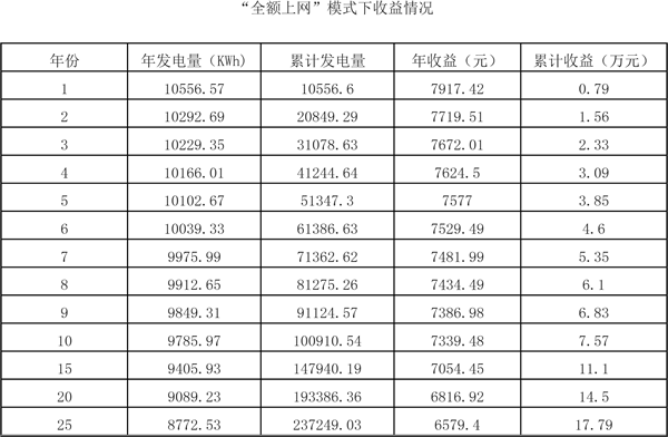 如果用戶選擇“全額上網(wǎng)”的方式并網(wǎng),那么每年的收益就是發(fā)電量*光伏標(biāo)桿電價(jià)。大約在第八年就可以收回投資成本,后面的每一年都是凈收益。