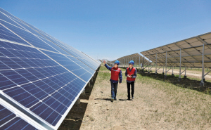 “綠電9日”的關(guān)鍵,是要在確保電網(wǎng)安全的前提下,保證電力全清潔能源供應(yīng)。圖為青海海南供電公司黨員服務(wù)隊服務(wù)光伏企業(yè)。 王靜 攝