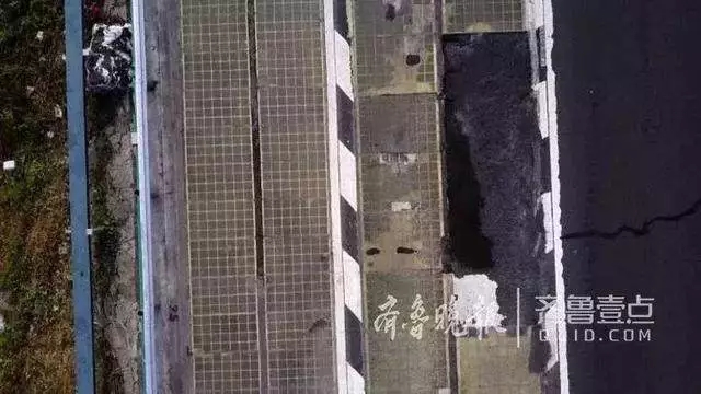 近距離看,可見快車道上破損的光伏電池較多,而應急車道則問題不大。目前部分電池路面正在更換施工中。