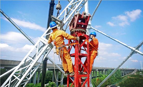 上海市級重大工程——220千伏松工、華陽橋輸電線路工程立塔現(xiàn)場