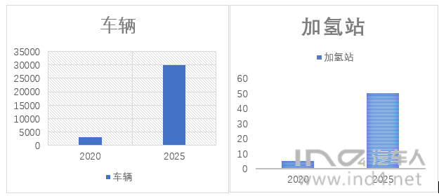 ? 2021-2025年:形成有國際影響力的整車企業(yè)1家、動力系統(tǒng)企業(yè)2-3家、關(guān)鍵零部件企業(yè)8-10家,燃料電池汽車全產(chǎn)業(yè)鏈年產(chǎn)值突破1000億元。在示范運行與推廣層面,建成加氫站50座,乘用車不少于2萬輛、其它特種車輛不少于1萬輛。