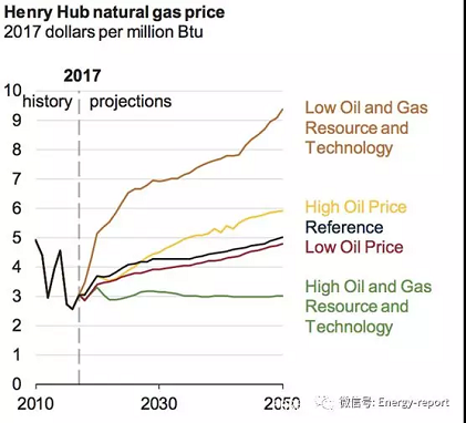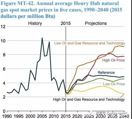 美國能源信息署2016年度能源展望的天然氣價格預測,EIA