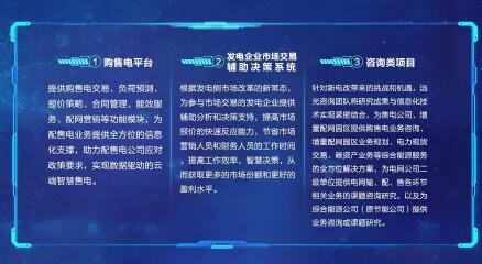 2018年,為響應電力體制改革發展新趨勢,在電力市場中獲取更大的競爭優勢,遠光能源互聯網將現有業務整合為配售電平臺、發電企業市場交易輔助決策系統、咨詢服務三大業務體系,發力電能全產業鏈,加速構建能源互聯網新生態。