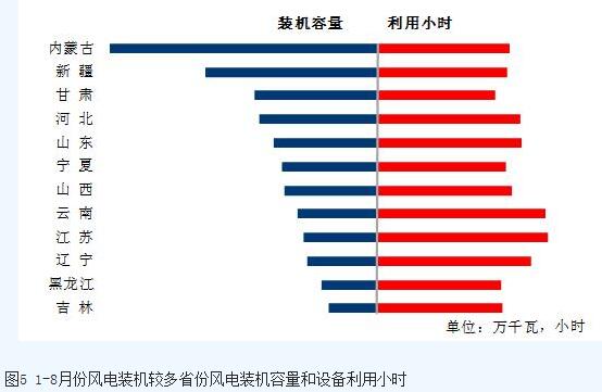 分類型看,1-8月份,全國水電設備平均利用小時為2338小時,比上年同期增加34小時。在水電裝機容量超過1000萬千瓦的8個省份中,青海、廣西、湖北、云南和貴州同比分別增加907、298、240、180和134小時,湖南、廣東和四川同比分別降低589、106和66小時;全國火電設備平均利用小時為2939小時(其中,燃煤發電設備平均利用小時2950小時),比上年同期增加145小時。分省份看,全國共有12個省份火電設備利用小時超過全國平均水平,其中江西3529小時,河北和安徽超過3400小時,內蒙古、江蘇、陜西、山東、寧夏、福建、天津和海南超過3000小時,云南和西藏分別僅為1271和218小時。與上年同期相比,全國共有25個省份火電利用小時數同比增加,其中,福建同比增加超過800小時,增加843小時,湖南、廣東、廣西和云南同比增加超過400小時,分別增加508、476、473和448小時,而青海、江蘇、寧夏、山東、新疆和陜西同比降低,其中青海、江蘇、寧夏、山東和新疆同比分別降低492、270、215、147和134小時;全國核電設備平均利用小時4820小時,比上年同期增加77小時;全國并網風電設備平均利用小時1412小時,比上年同期增加167小時;全國太陽能發電設備平均利用小時851小時。