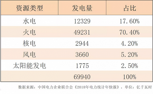 目前,我國風(fēng)電、光伏在電力結(jié)構(gòu)中仍只占據(jù)較小的比重。2018年,全國風(fēng)電、光伏發(fā)電量分別為3660億千瓦時、1775億千瓦時,占據(jù)全部發(fā)電量的5.2%、2.5%。