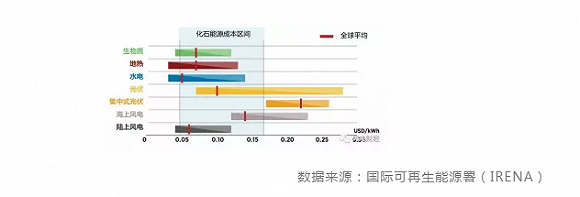 國際可再生能源署(IRENA)預(yù)計,隨著技術(shù)進步,2019年全球成本最低的風(fēng)電和光伏項目的度電成本將達到甚至低于3美分/千瓦時,成為最經(jīng)濟的綠色電力。