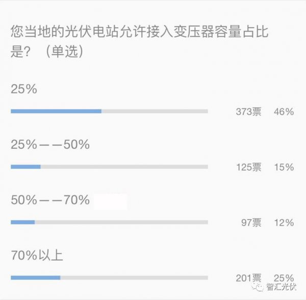 根據相關媒體的調研,大約一半的人(46%)在進行戶用光伏系統并網時,被要求光伏項目容量不能超過接入變壓器容量的25%。