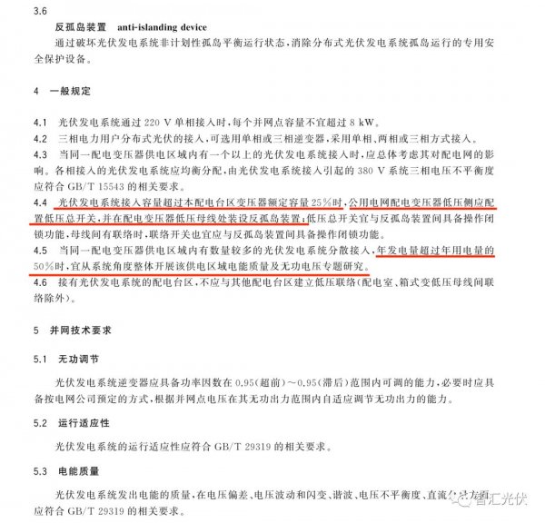 隨著戶用光伏的發展,2017年推出了《戶用分布式光伏發電并網接口技術規范》。該規范中,雖然對接入規模雖然沒有具體要求,然而要求:
